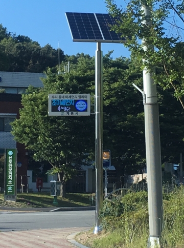 시는 등굣길, 출퇴근길 등 생활공간에서 시민들이 미세먼지 정보를 확인하고 즉각 대응할 수 있도록 친환경 태양광을 사용하는 미세먼지 알리미를 설치했다.
