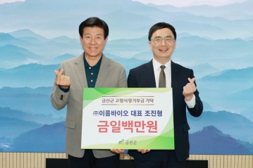 조진형 ㈜이룸바이오 대표는 지난 12일 금산군을 방문해 고향사랑기부금 100만 원을 기탁했다.