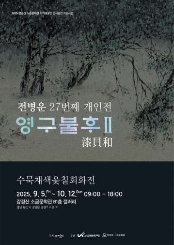 (재)논산문화관광재단(이사장 백성현)이 강경산 소금문학관 지역예술인 전시공간 지원사업으로“영 구 불 후 2”- 전병운 27번째 개인전을 2025년 9월 5일(금)부터 10월 12일(일)까지 강경산 소금문학관 지하 1층 갤러리에서 개최한다.