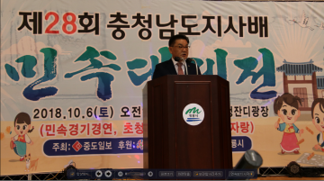 중도일보가 개최하고 충청남도와 계룡시가 후원하는 ‘제28회 충청남도지사배 민속대제전'이 6일, 최홍묵계룡시장을 비롯한 김종민국회의원 및 계룡시의원, 각시군 선수단등 2천여명이 참석한 가운데 계룡시민체육관에서 열렸다.