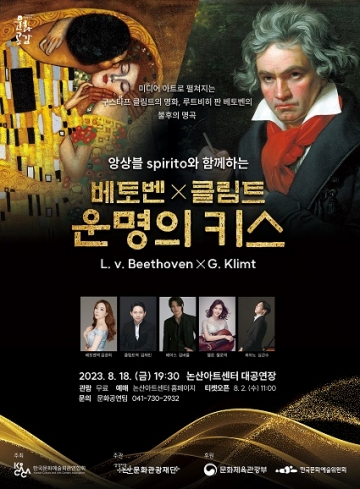 논산문화관광재단(대표이사 지진호)이 오는 18일 오후 7시 30분 논산아트센터에서 ‘스피리또앙상블과 함께하는 <베토벤×클림트, 운명의 키스>’공연을 선보인다.
