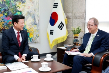 이날 박범인 군수는 반기문 이사장을 만나 금산인삼의 국제적 인지도 향상과 세계시장 확대의 필요성을 설명했다.